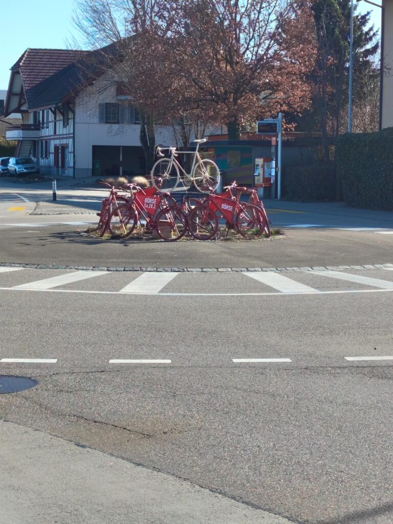 Heute wurde der Hofwilkreisel als Ankündigung für die Velobörse neu gestaltet.